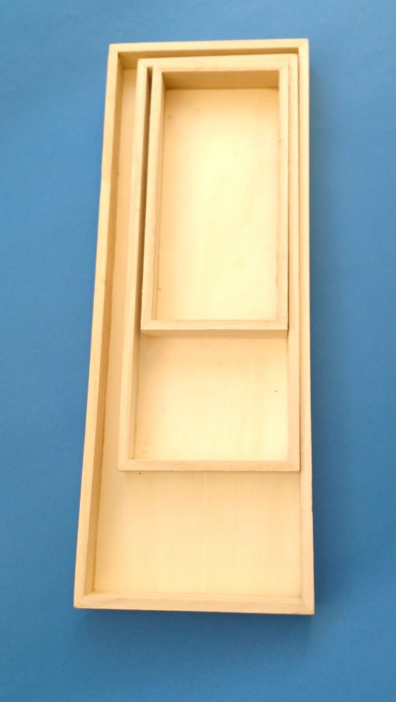 They are sold as a three-pack described as 'trays' for somewhat under a tenner (I think I paid around £8.50). They are made of wood so quite rigid but light weight. They can also be turned up the other way to make platform bases if required.