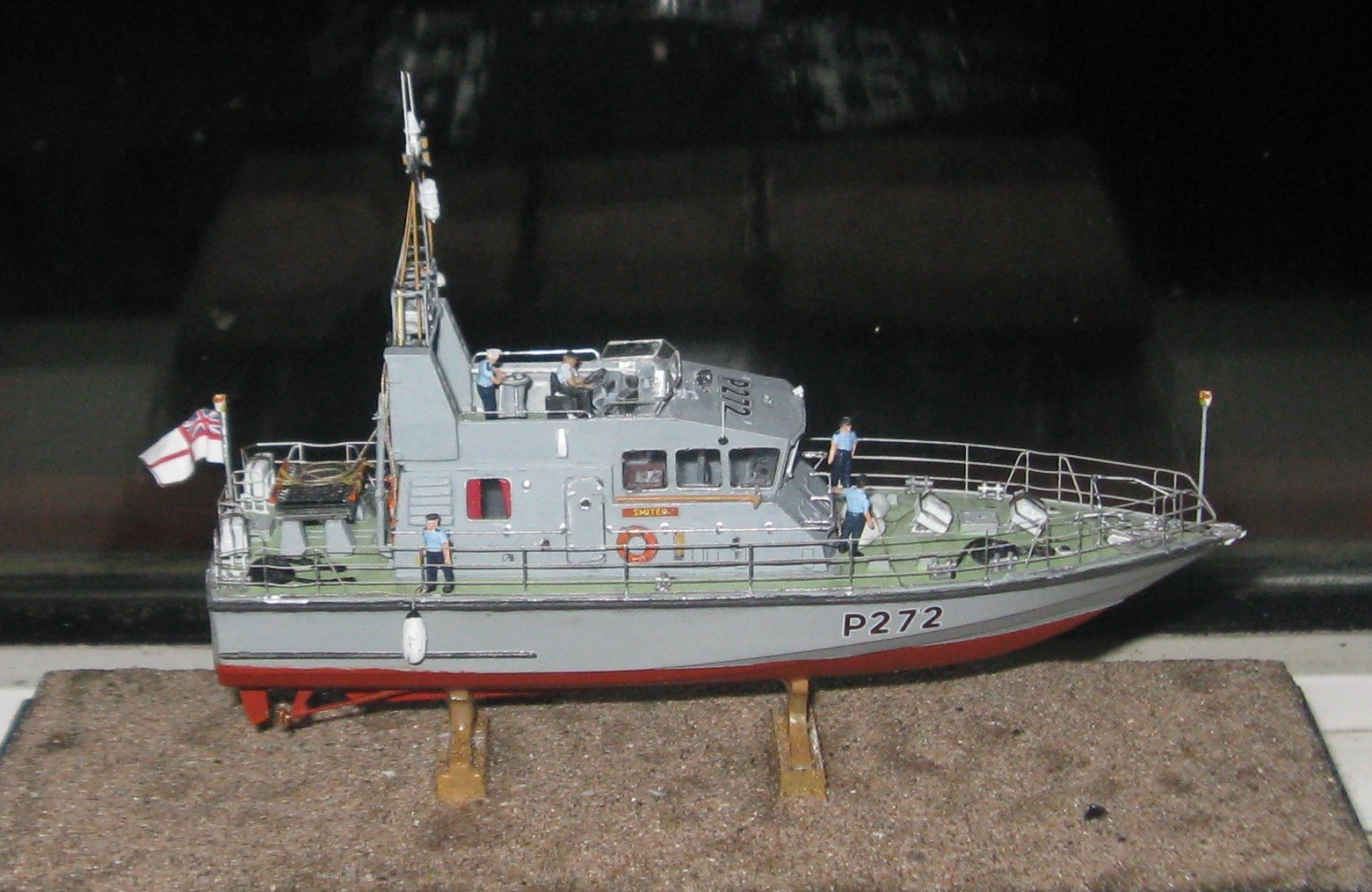 In 2012 I had just started on the hull of a my 1/25 P2000 class patrol Boat when HMS Smiter and HMS Charger came to the Whitehaven Maritime Festival, so I obviously went down to take some photos as I only live 5 miles from Whitehaven. I approached a person on the dockside next to the HMS Smiter smoking a cigarette and asked if he knew anybody on the boat. It turned out he was the ships commander (Lt. Gary Bickley), so I told him that I had just started to build a model of the Archer class at which point he called one of the ship university cadets manning the boat and told her to take me on board and let me take as many photos as I wanted. I was shown all around and took hundreds of photos. (aren't digital cameras great) As I was going down into the lower control room the decision to build Smiter was made for me as my foot slipped on the steps and Smiter SMOTE me on the shin. After returning to the dockside the commander asked if I had all I needed at which point he told me he came from Wigton which is just 25 miles away from my home and he was also a modeller. With the photos taken that day I spent the next 18 months scratch building my most ambitious model.