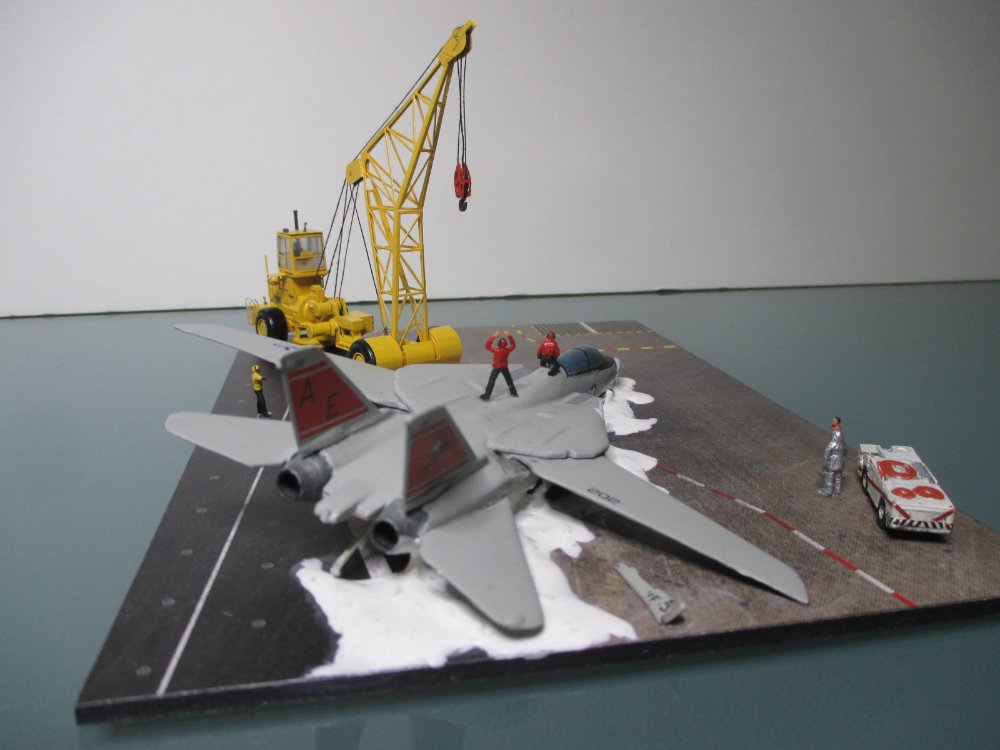 Metal kit from Toki for the F-14, flight deck vehicle and personnel from Dragon, Coastal Kits aircraft carrier base, a lot of sweat and last but not least, some good insults.....