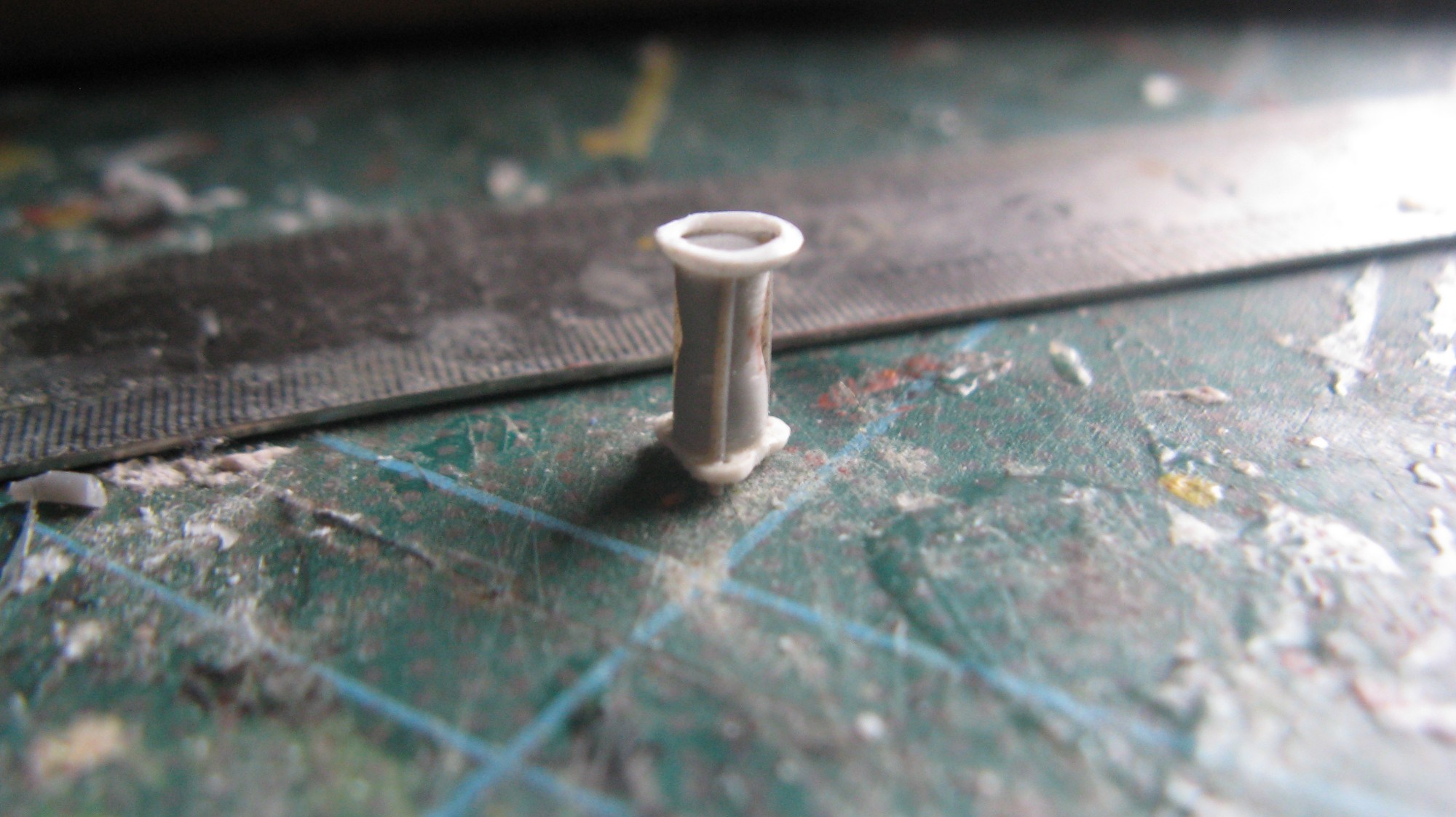 Once the mounting/display was sorted it was now time to continue the building of the boat. The binnacle on the bridge looked a bit underfed so I made a new one out of a bit of sprue and added the frame that surrounds it.