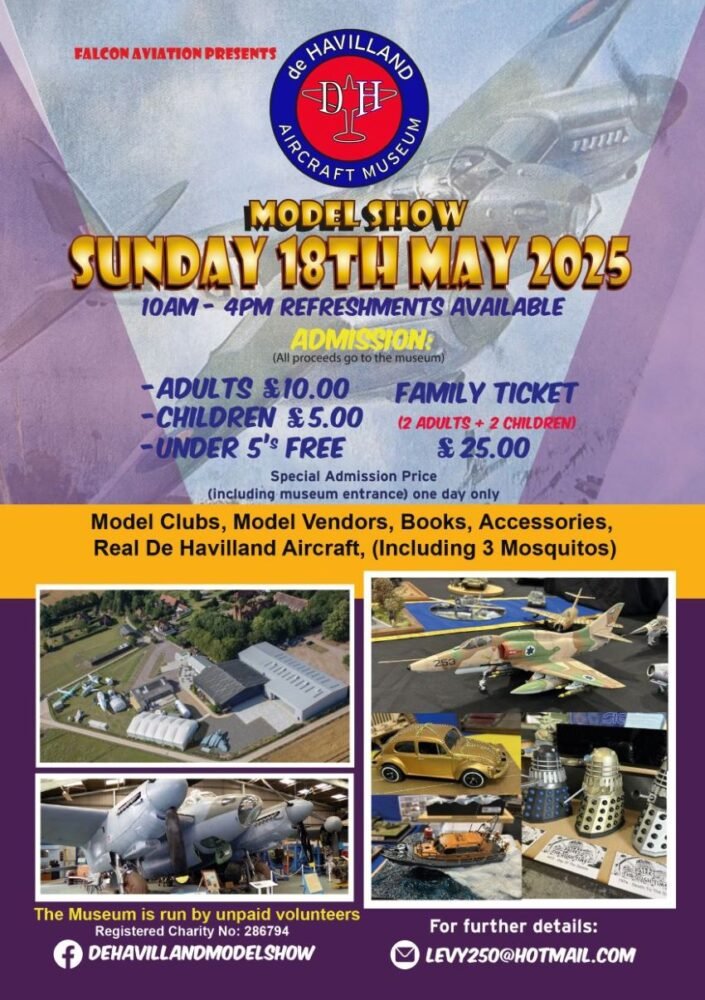 The Dh show is on the 18th May. I supply my own tables for this show and I exhibit only 144th scale models of De Havilland aircraft.