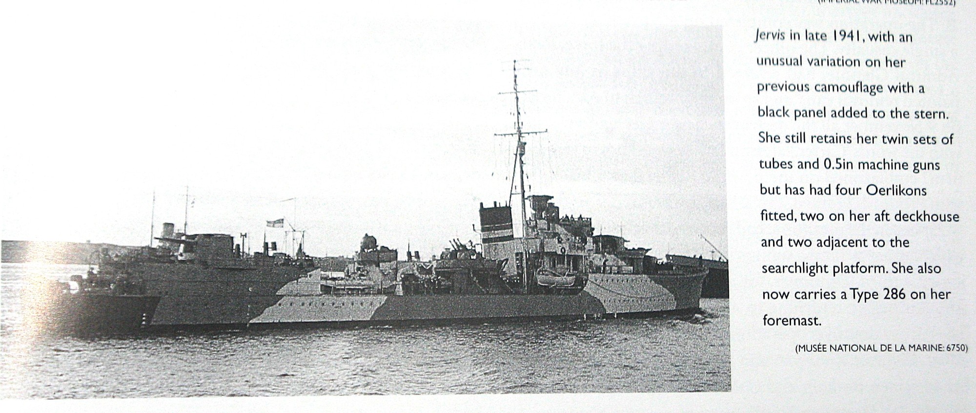 As is my technique when I build a model of a subject, I gather as much information as I can find ie: Books which are usually a good read and information source. Found that “Jervis” went right through the war from start to finish without the loss of any crew member due to enemy action and was thus referred to as “Lucky Jervis”