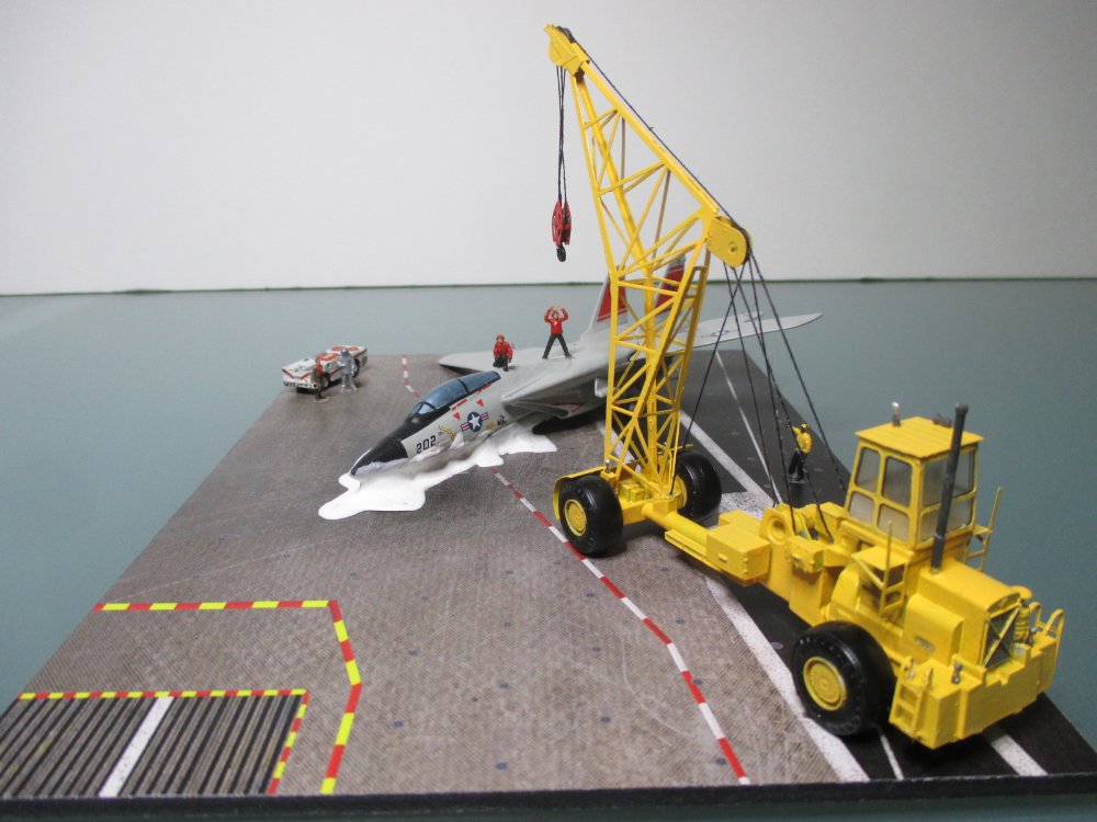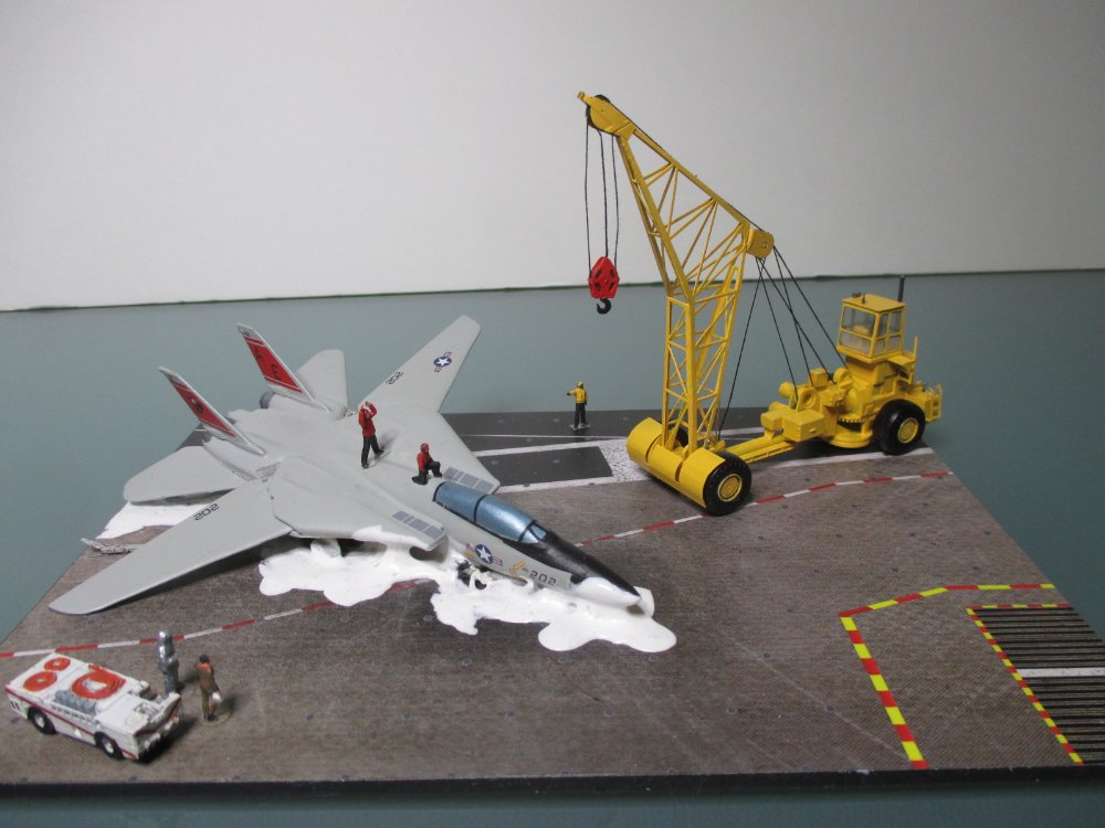 Metal kit from Toki for the F-14, flight deck vehicle and personnel from Dragon, Coastal Kits aircraft carrier base, a lot of sweat and last but not least, some good insults.....