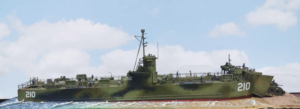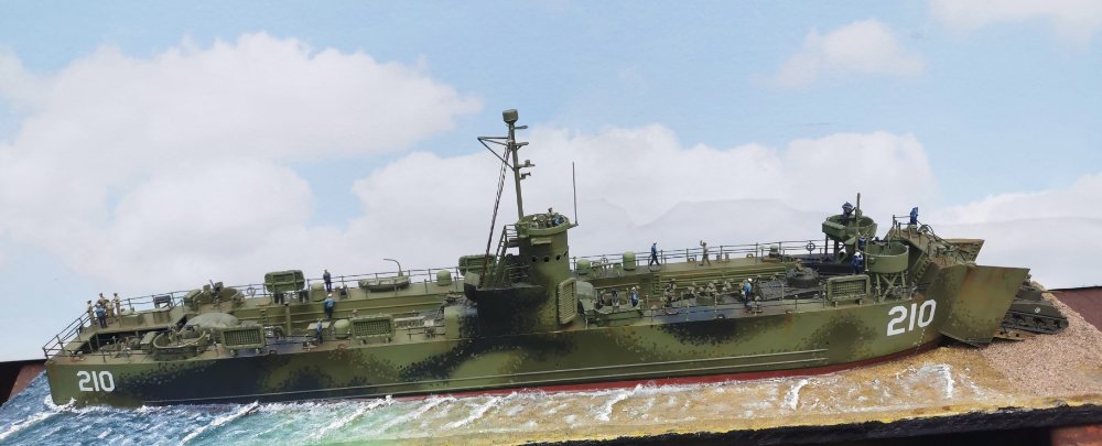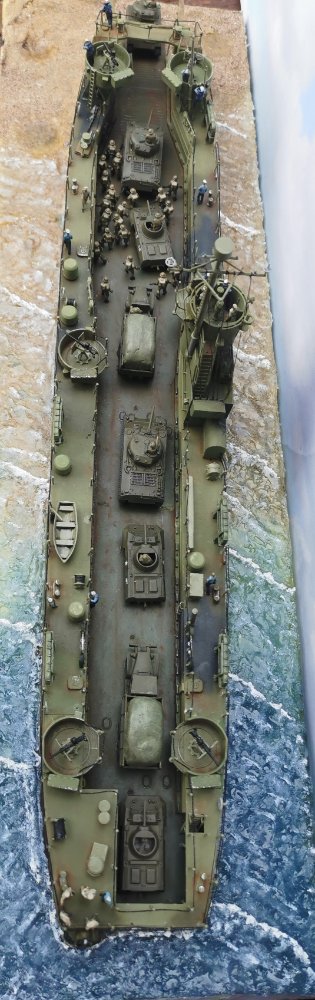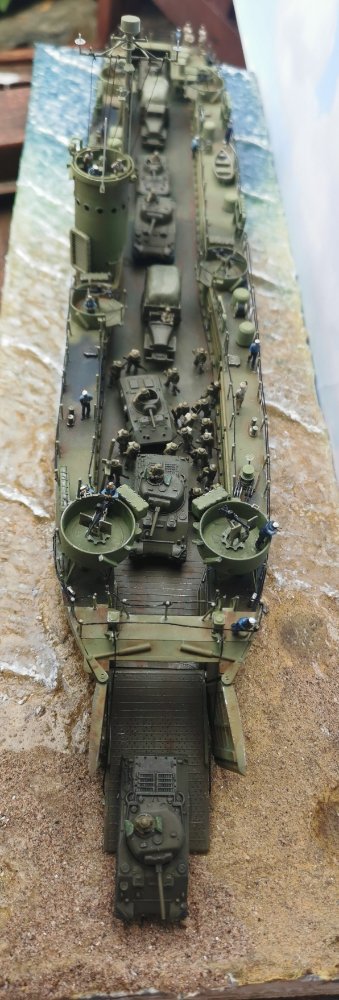 Revell LSM landing craft + Victrix Games British infantry figures. The LSM was made a few years ago but trying out "Woodlands Water System so mounted the LSM on a base