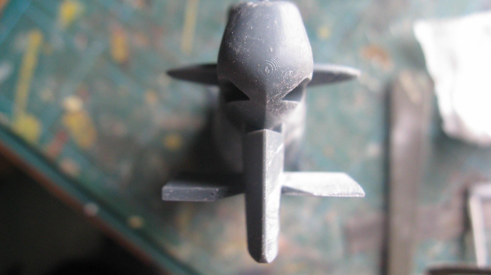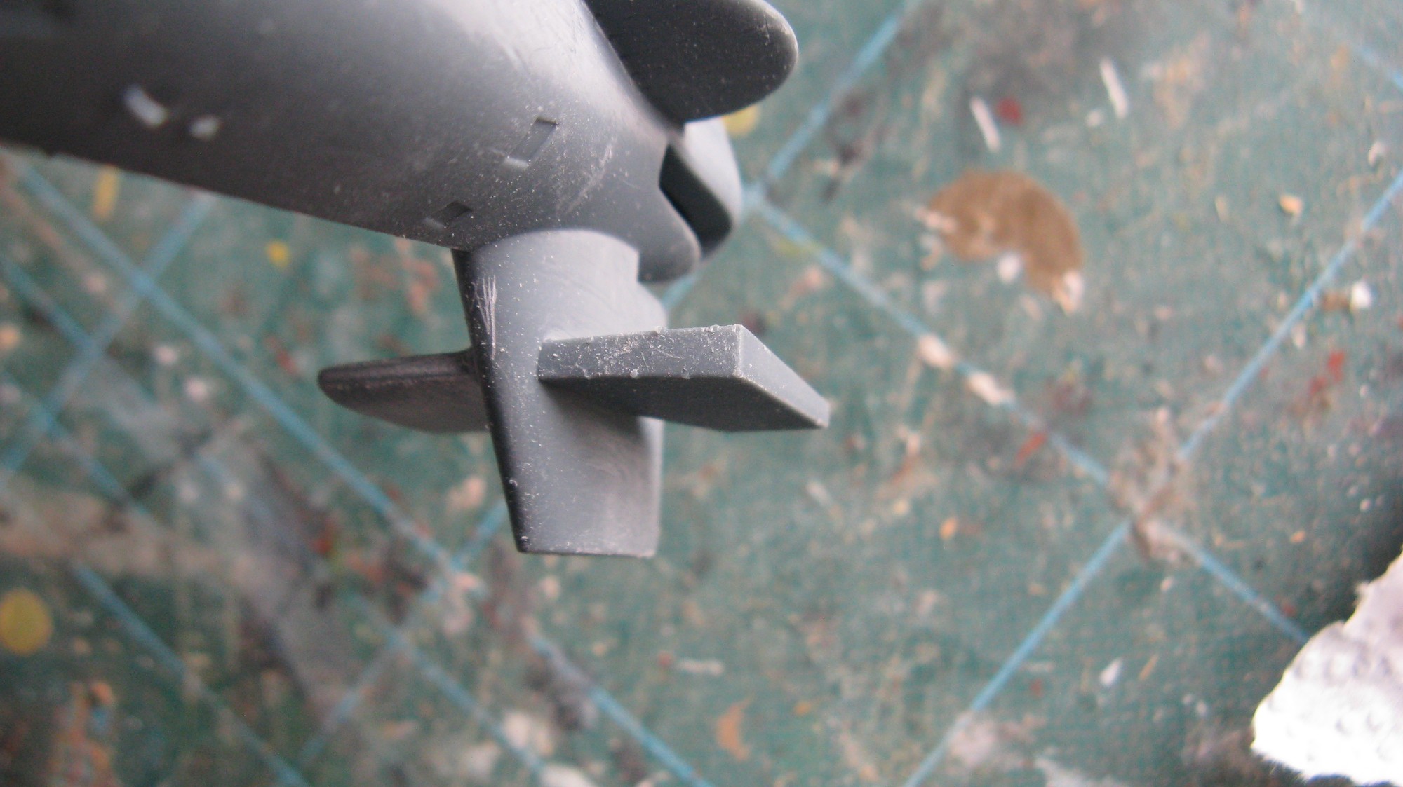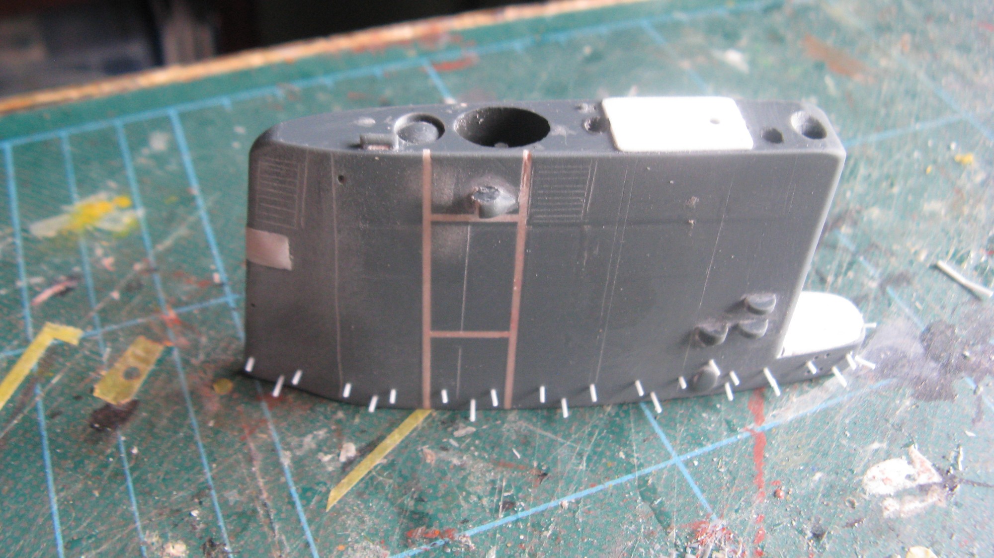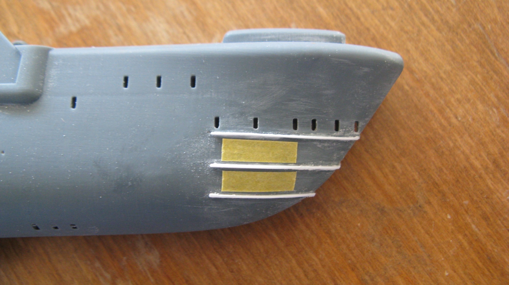 There are some really deep trenches on the hull but more particularly on the conning tower/fin. These were filled using car body filler before adding some panel line detail.